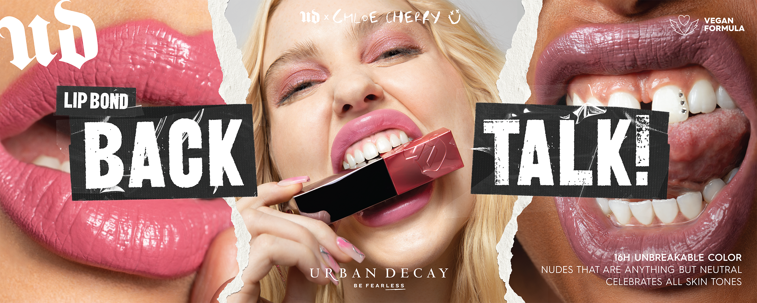 For the launch of their newest Lip Bond shades, Urban Decay shows that their nudes are anything but neutral. With intense pigment and lasting power like never before, the Backtalk collection inspires those who wear it to always mouth-off.
